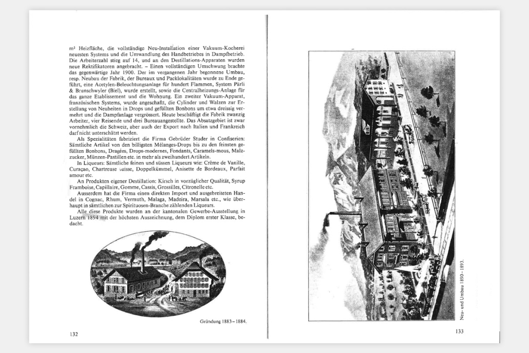 ls Spezialität fabriziert die Firma Gebrüder Studer in Confiserien: Sämtliche Artikel von den billigsten Mélanges-Drops bis zu den feinsten gefüllten Bonbony, Dragées, Drops-modernes, Fondants, Caramels-mous, Malzzucker, Münzen-Pastillen etc. in mehr als zweihundert Artikeln.