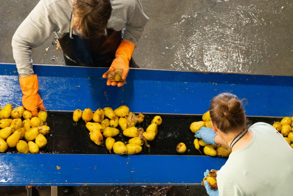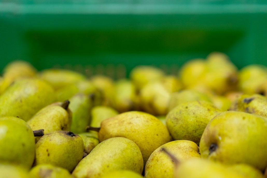 Bekanntlich machen kleine Details den feinen Unterschied aus. Dies ist auch bei beim maischen der Williams Birnen nicht anders. Durch die Qualität der verwendeten Früchte können wir das Aroma des Endprodukts bereits jetzt schon beeinflussen. Und um die hohe Qualität der verwendeten Früchte gewährleisten zu können, setzen wir auf die geschulten Augen unserer Mitarbeitenden. Jede Williams Birne wird gewaschen und über das Förderband unseren Mitarbeitenden vorgeführt. Birnen von minderer Qualität sowie Blätter werden so vor dem Maischen von Hand aussortiert. Durch diesen Prozess gelangen nur die besten Früchte in unsere Gärtanks.