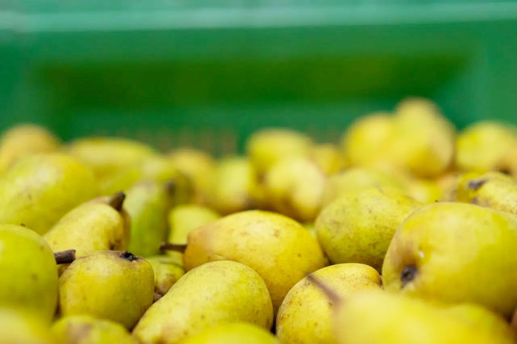 «Für uns ist der richtige Zeitpunkt also entscheidend – denn Alkohol ist ein Geschmacksträger und verstärkt damit den Geschmack des Ausgangsprodukts», erklärt unser Brennmeister und Produktionsleiter Reto Meier. Ist der richtige Zeitpunkt dann gekommen, werden die Birnen gewaschen und auf dem Förderband von Auge und Hand verlesen: Eine perfekte Optik, wie sie der Detailhandel wünscht, müssen sie nicht vorweisen – warum, das haben wir im ersten Teil erklärt. Faule oder anderweitig unbrauchbare Kandidaten jedoch scheiden aus. «Wobei wir wirklich sehr zufrieden mit der Ware sind, die wir von den Erzeugern erhalten. Es wird sauber geerntet!», so Reto Meier. In Zahlen: Im Erntejahr 2024 lag der Ausschuss pro 100 Tonnen Williams bei unter 500 Kilogramm. Das ist sehr wenig und macht uns die Vorarbeit deutlich leichter.